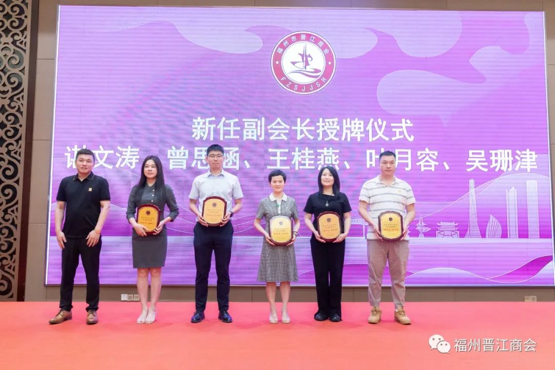 (商会执行会长谢嘉庆为新任副会长谌文涛、曾思涵、王桂燕、叶月容、