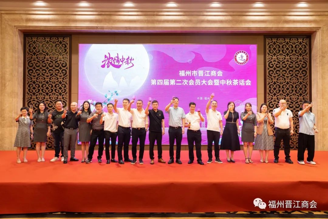 晋江市驻榕办主任蔡长坚、会长陈锦阳带领商会领导班子一同上台祝酒,让我们一起为商会更美好的明天干杯!随即,晚宴上精彩纷呈的节目表演将活动推向高潮,本次的中秋茶话会,商会不少会员都踊跃报名了才艺表演,为中秋茶话会增加了活跃气氛,感谢你们的辛苦付出!
