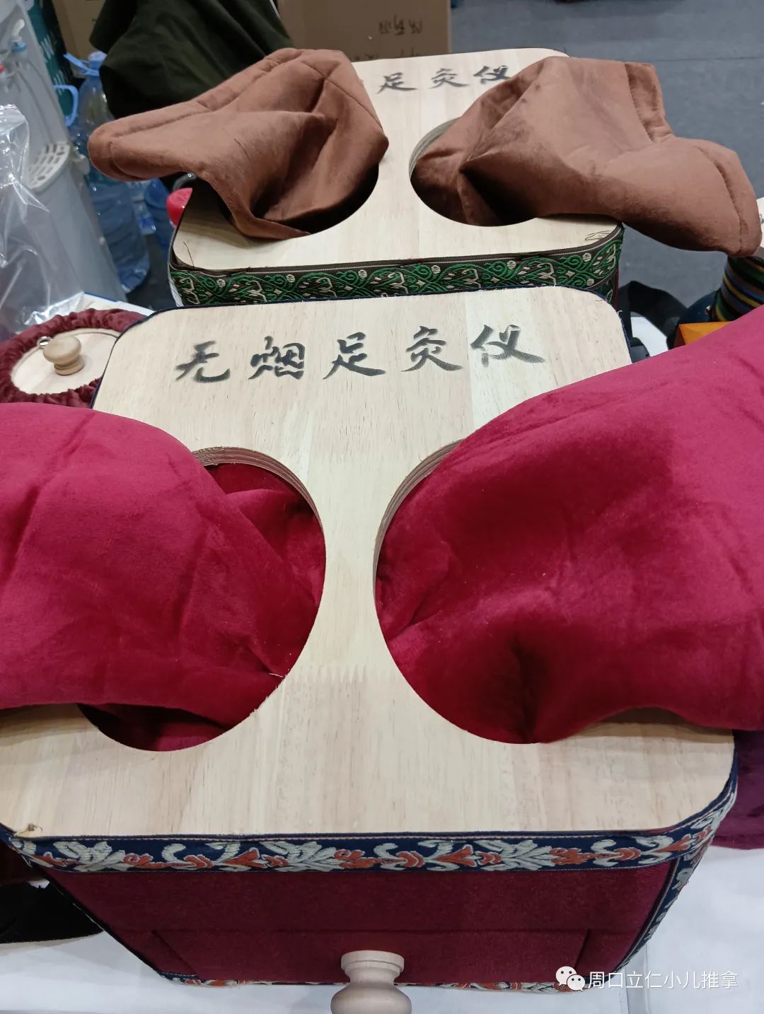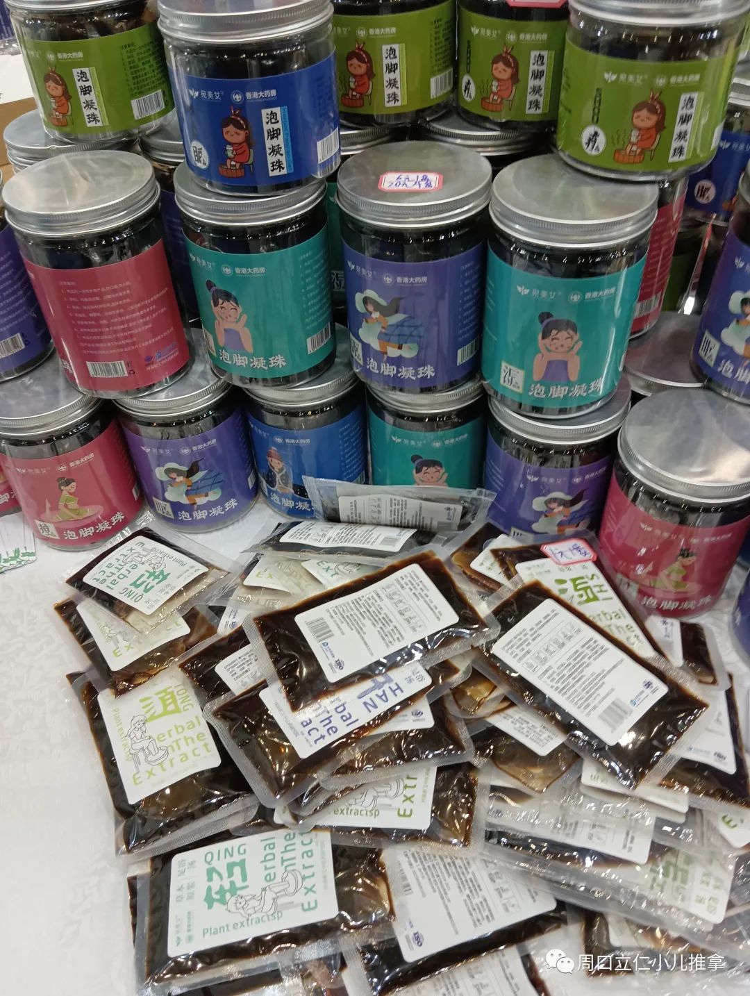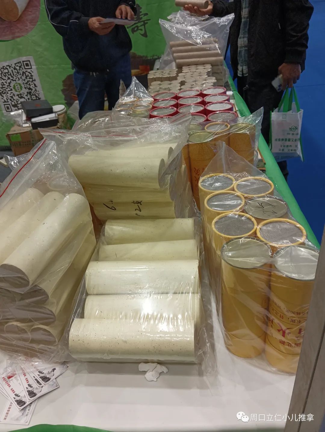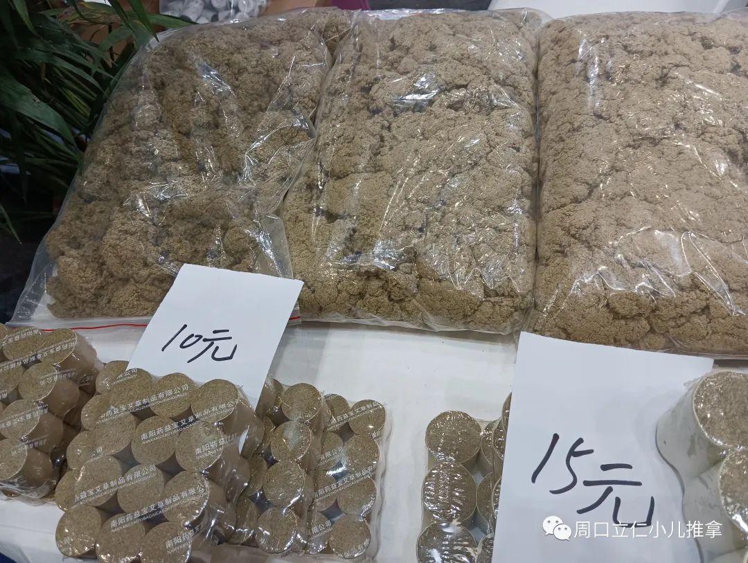 现场产品基本上还是以各种规格的艾条,艾绒,相关艾灸盒,器具为主,也有各类贴剂,膏剂。因为没啥技术门槛,要想把这些产品做出差异很难。同质化明显,包装盒一拆,往那一放,区别不大。
