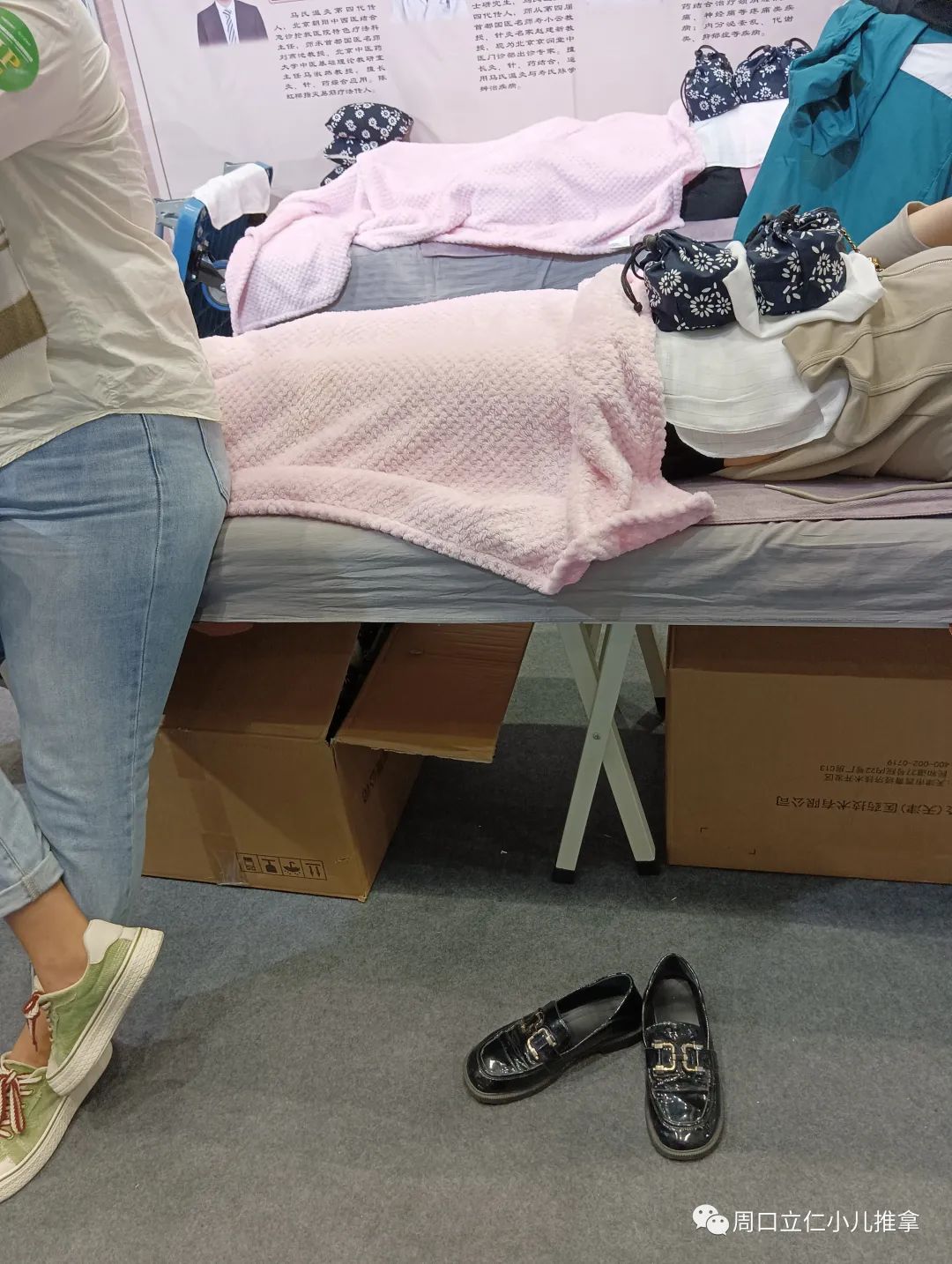 2.然后开始熏蒸下肢。用她们专用中药包煮的中药液。