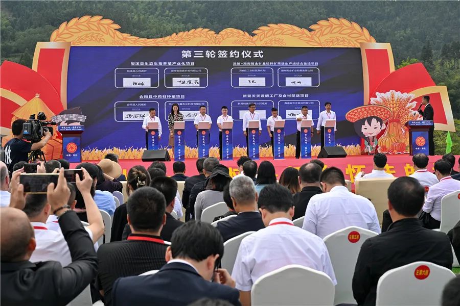 开幕式现场,集中签约了16个项目共70.72亿元,并举行了庆丰收文艺演出。助力乡村振兴企业代表、五大洲海外商协会代表、海外华文媒体代表、省侨青代表结合自身实际,分享了对乡村振兴事业的感悟与体会,并表示将充分发挥自身独特资源,为湖南乡村振兴事业注入源源不断的动力。9月25日,海外侨胞走进怀化溆浦县、芷江县,近60名海外侨胞通过考察雁鹅界古村落,现场体验民风民俗,感受传统趣味,并走进湖南省华侨文化交流基地向警予同志纪念馆、中国华侨国际文化交流基地中国人民抗日战争胜利受降纪念馆、湖南抗战馆和飞虎队纪念馆,追寻红色记忆,感悟革命精神。