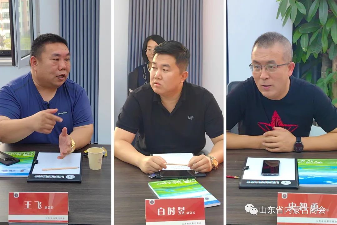 ▲山东省内蒙古商会副会长王飞(左);山东省内蒙古商会副会长白时昱(中);山东省内蒙古商会副会长史智勇(右)
