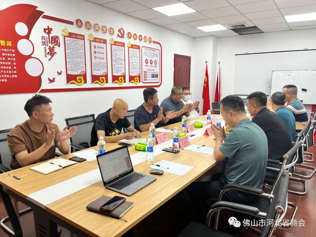 2023年9月25日下午,佛山市河北省商会秘书处组织召开了佛山市河北省商会2023年9月常务理事会会议,出席本次会议的成员有:商会会长乔梓峰,商会监事长杨建民,商会常务副会长张建远,王亚朝,韩中儒,郝炯,王永强,张春雷,商会财税顾问王志刚等一行领导。