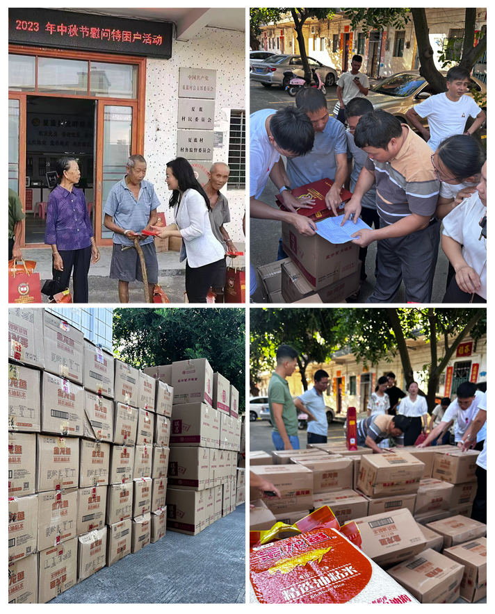 2023年9月25日,在中秋、国庆双佳节来临之际,波顿集团组织公司志愿者开展“爱在中秋 情满岭门”波顿集团2023年中秋献爱心慰问活动,为电白区岭门镇特困户送去中秋大米、月饼等爱心礼物。