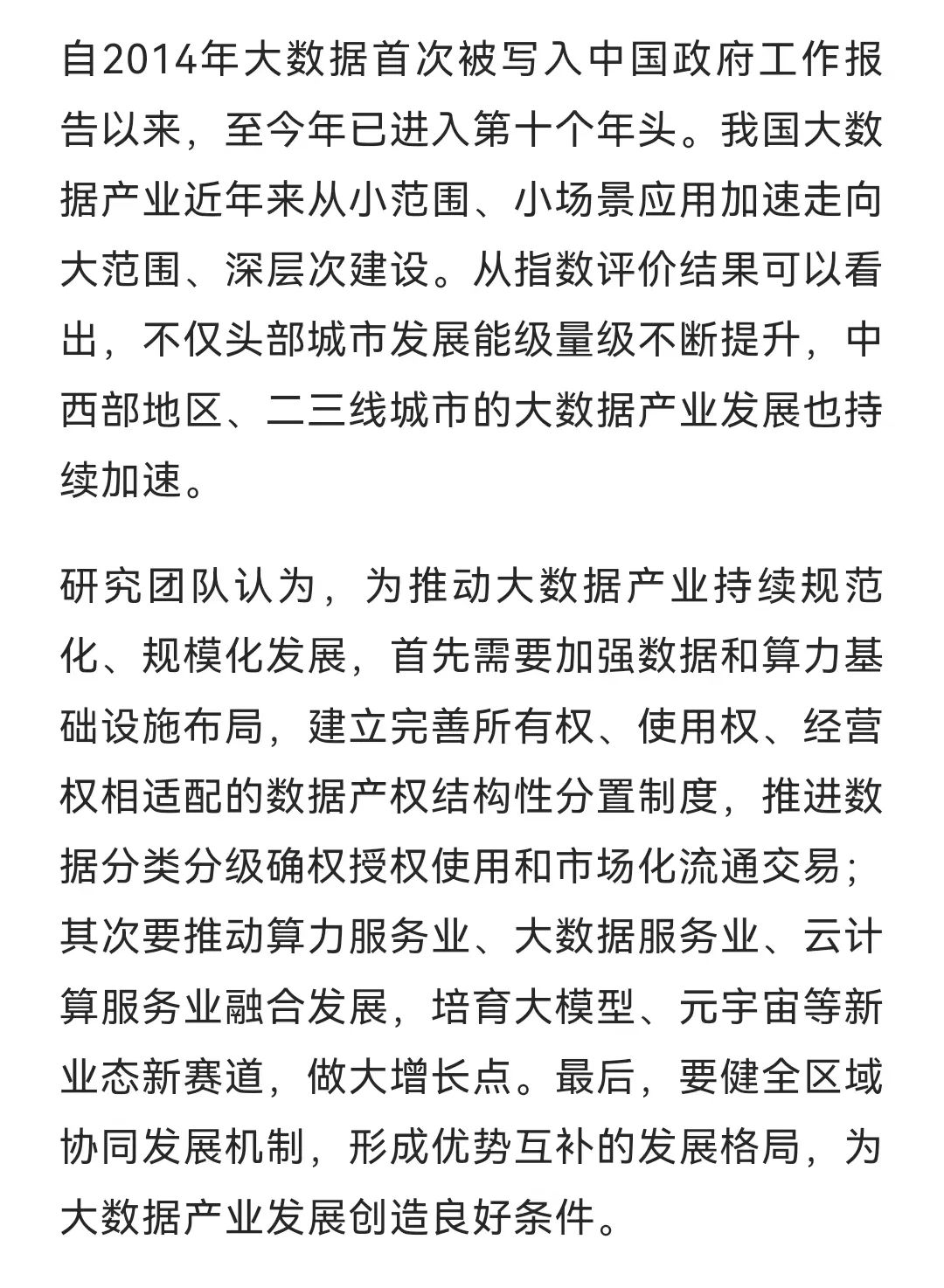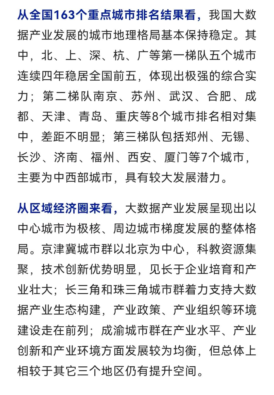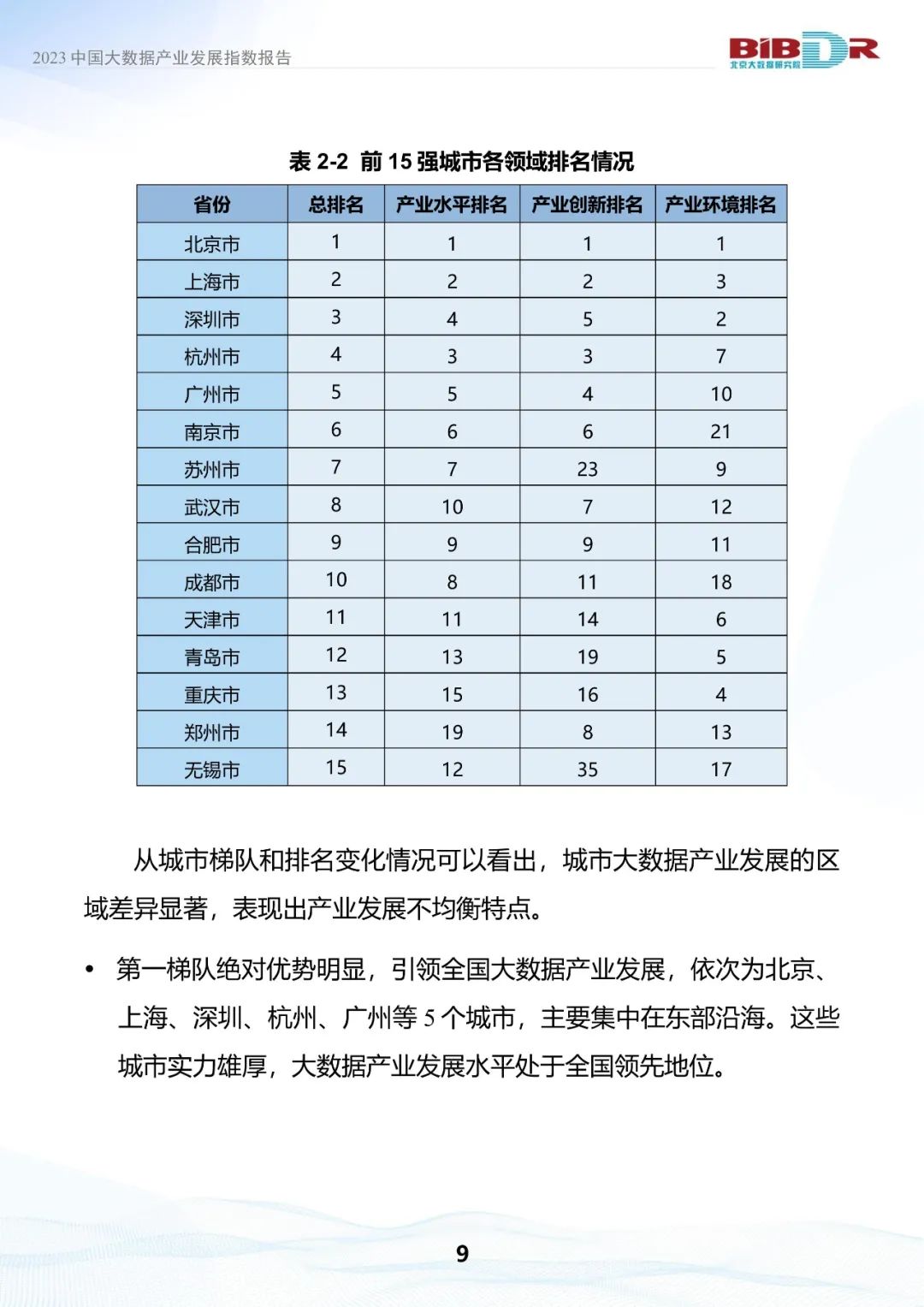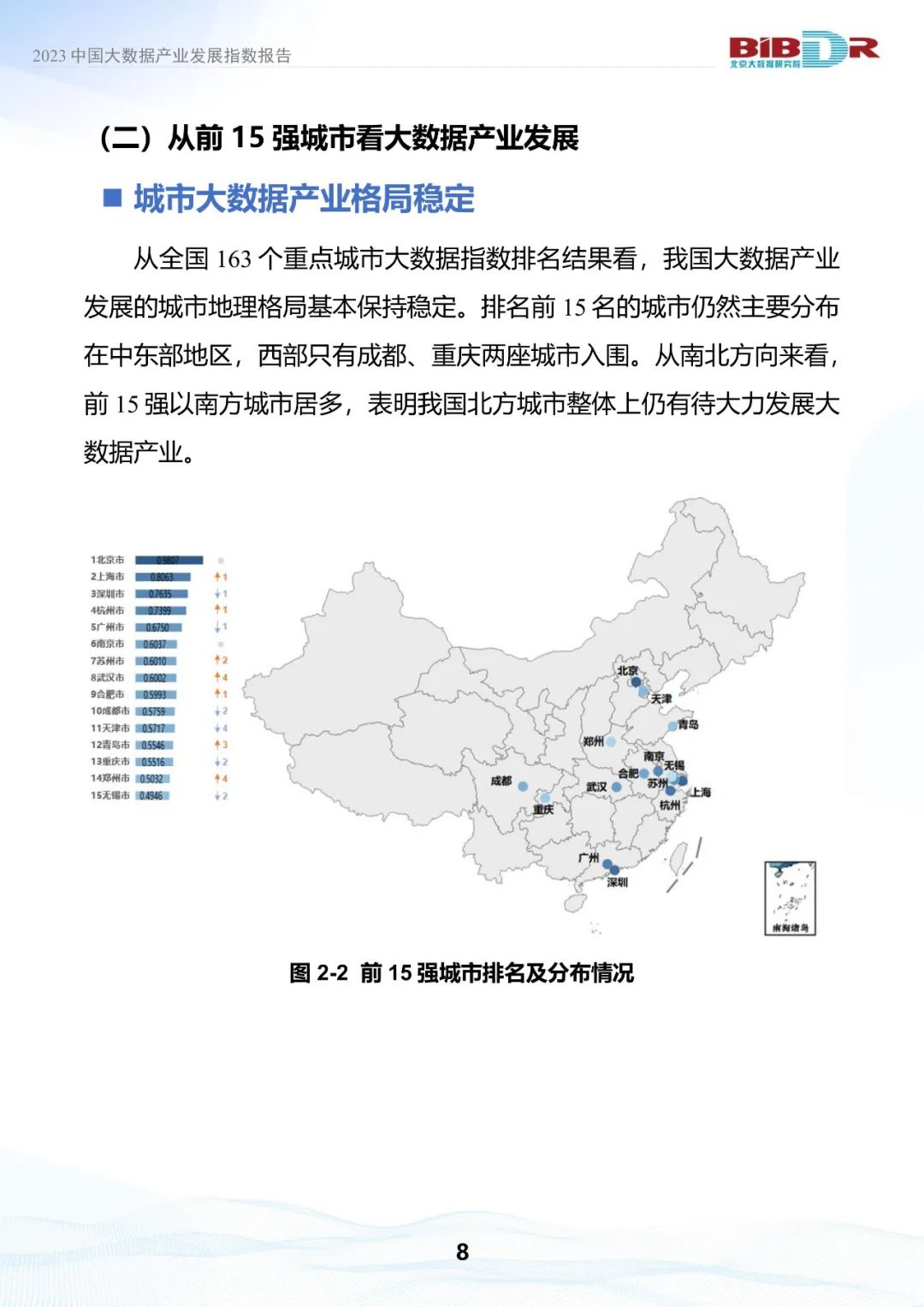 2023中国大数据产业发展指数报告正式发布,15强城市排名出炉。