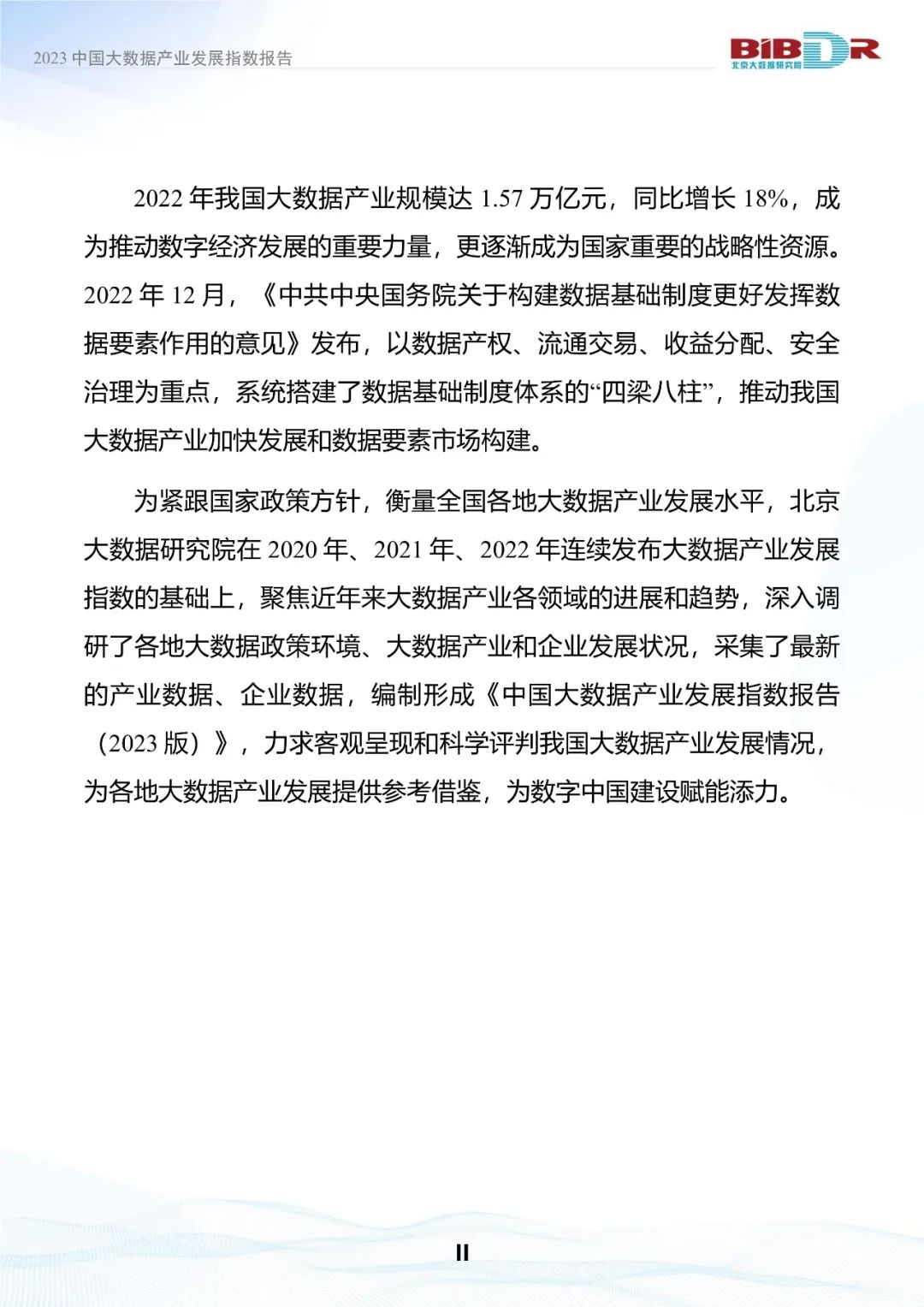 2022年我国大数据产业规模达1.57万亿元,同比增长18%,成为推动数字经济发展的重要力量,更逐渐成为国家重要的战略性资源。2022年12月,《中共中央国务院关于构建数据基础制度更好发挥数据要素作用的意见》发布,以数据产权、流通交易、收益分配、安全治理为重点,系统搭建了数据基础制度体系的“四梁八柱”,推动我国大数据产业加快发展和数据要素市场构建。