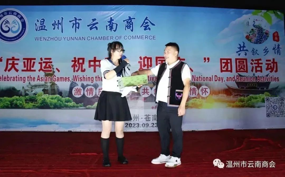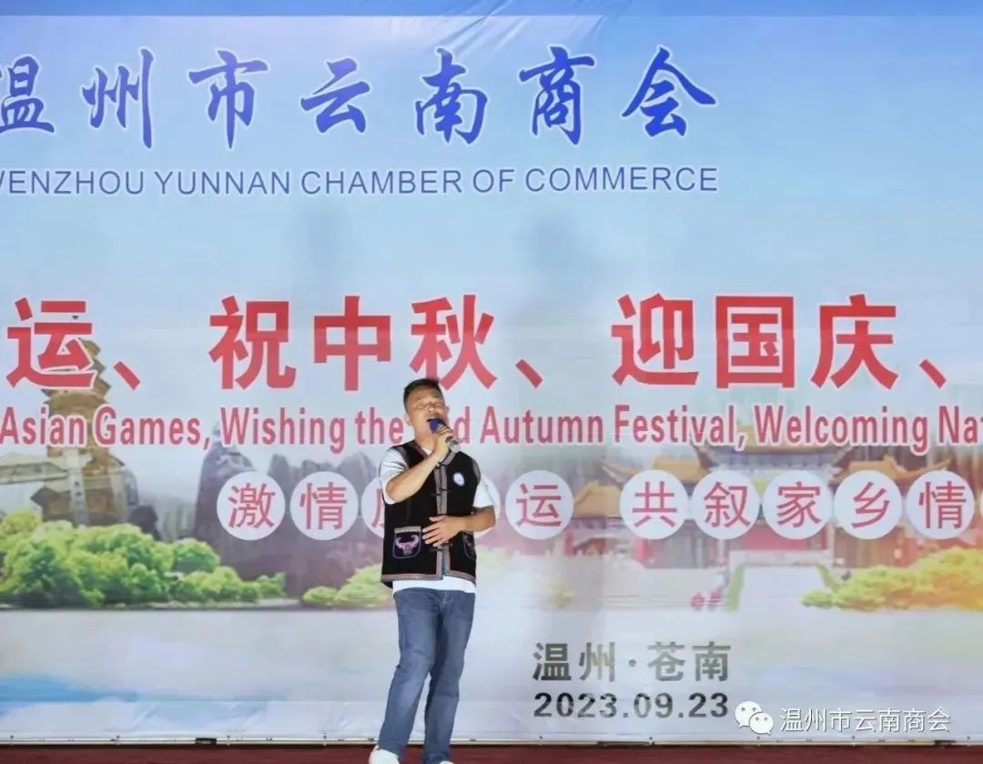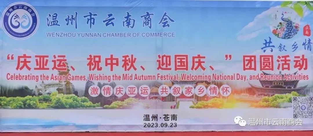金风送爽,硕果飘香,值此中秋国庆佳节即将来临之际,恰逢杭州第十九届亚运会召开,9月23日,温州市云南商会“庆亚运、祝中秋、迎国庆、共叙乡情”团圆活动在苍南梦江南生态园举行,会员、会员家属和特邀嘉宾共200多人参加了此次活动。