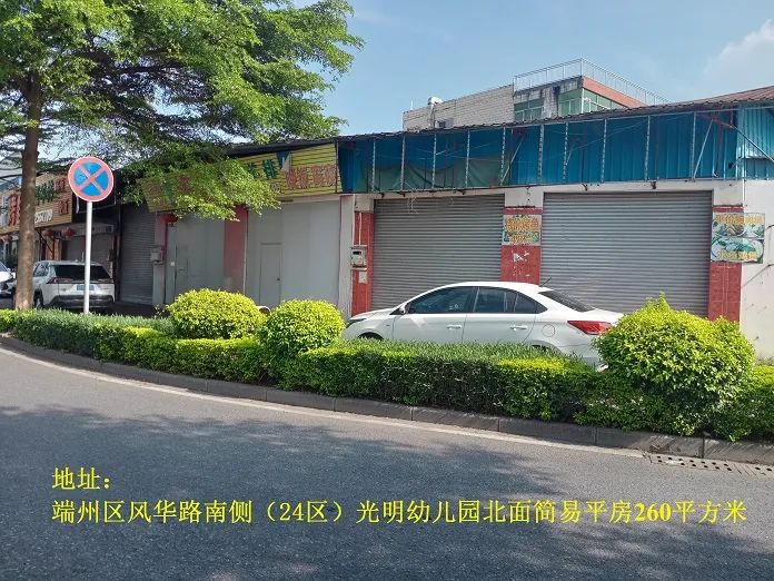 肇庆市端州区风华路南侧(24区)光明幼儿园北面简易平房 | 面积约260㎡ | 每月6500元 | 5年 | 78000元(大写:人民币柒万捌仟元整) | 竞得价的三个月租金 |