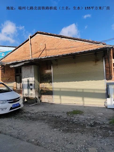 肇庆市端州区端州七路北面铁路桥底(土名:生水)厂房 | 面积约155㎡ | 每月每平方米14元 | 10年 | 26040元(大写:人民币贰万陆仟零肆拾元整) | 竞得价的三个月租金 |