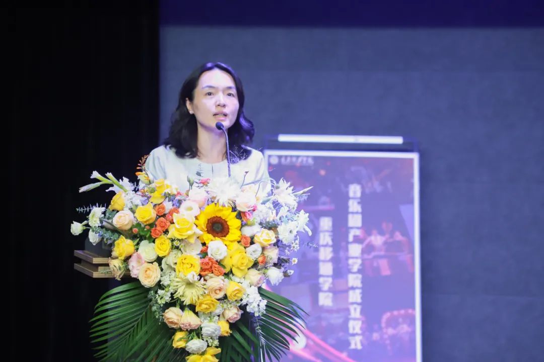 中国新商科大学集团执行董事、常务副总裁王征向音乐剧产业学院的成立表示热烈祝贺。她讲到,过去的十几年间移通音乐剧的发展历程中,师生对音乐剧的不断创作,呈现出诸多可能性,相信与三亚天涯蓝海酒店共同搭建的平台能够给优秀的同学们更大的舞台,去展现自己。她希望音乐剧产业学院的师生共同努力,珍惜机会,在享受蓝天白云的同时,也享受音乐剧表演带来的快乐,把音乐剧产业学院越办越好。