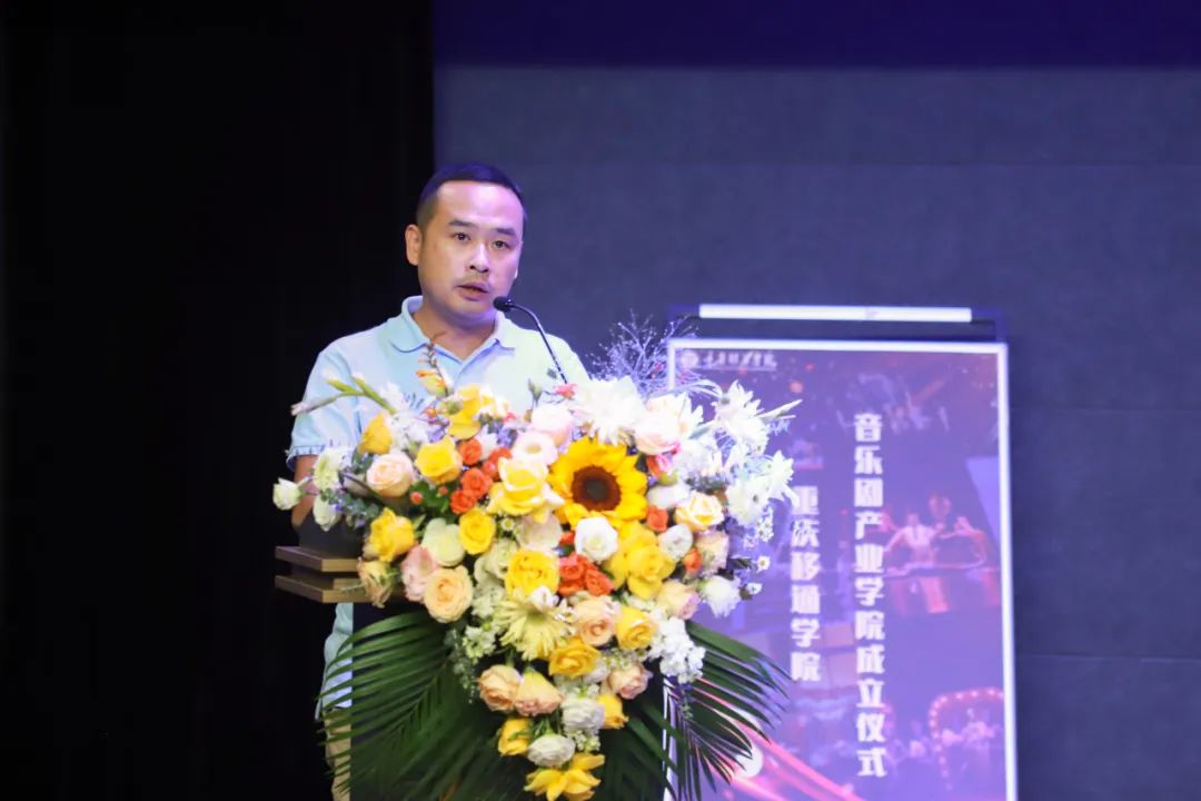 校长吕翊发表讲话。他强调,音乐剧产业学院的成立,是我校“四位一体双院制”特色育人模式的重要一环,是完满教育的全新尝试,也是我校十年砥砺前行,对艺术教育事业长远发展的必然成果。学院的成立也为“信息产业商学院”的“非科班”学生提供了更加广阔的学习平台、实践平台以及多元的展示平台,学校将进一步深化与三亚天涯蓝海度假酒店的产学研合作,加快教学实践成果转化。