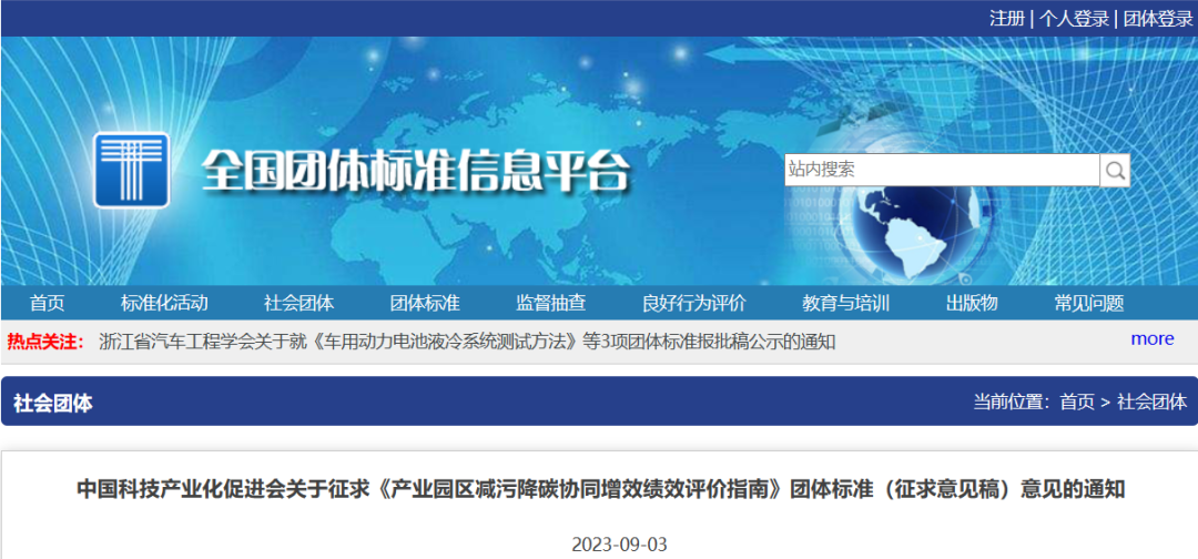 根据中国科技产业化促进会团体标准制修订计划,由生态环境部对外合作与交流中心提出,联合中国科学院大学、清华大学、浙江省生态环境低碳发展中心、南京大学环境规划设计研究院集团股份公司等单位共同起草《产业园区减污降碳协同增效绩效评价指南》团体标准(T/CSPSTC-JH202305)已完成征求意见稿和编制说明(附件1~附件2)。为保证团体标准的科学性、严谨性和适用性,现面向相关单位公开征求意见。如有相关意见反馈,请填写《意见反馈表》(附件3),并于10月6日前以传真、Email的形式反馈给联系人。欢迎相关单位来电索取标准全文,对标准内容提出宝贵的意见和建议。