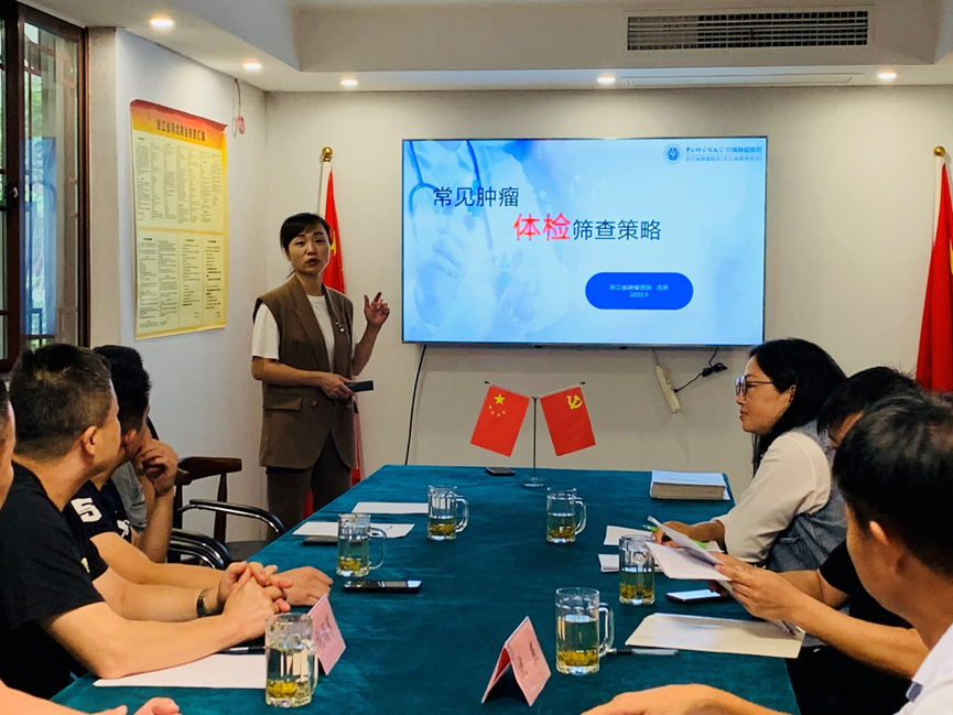 我会常务副会长、九月轮值会长张福军,副会长周延春、张闻勇、刘万祥、王勇,副秘书长曾永花,理事崔晓峰、陈向阳、吕新军,会员赵彭刚、王培钝等参加本次活动。会上,省肿瘤医院体检中心副主任医师沈燕解读常见肿瘤体检筛查策略,并就发病率较高的恶性肿瘤预防办法、筛查策略、注意事项等进行现场科普,教会大家如何做好健康管理,筑牢健康屏障,预防结合治疗,知行合一,为会员健康保驾护航。与会人员认真聆听,不时提出问题,并记录下疑问解答及关注的重点内容。