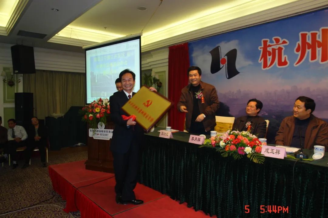 三、党建引领会建,成立商会党支部。或许是当过兵的经历,让黄靖很早就意识到商会党建的重要性。2006年,在黄靖的引导倡议下,韩传旺、吴小丽、章方苗三名党员筹备并成立了杭州市温州商会党支部。成立党组织是商会发展的必然选择,据商会第一任党支部书记韩传旺说道:“在杭州所有的商会里面,我们是最早一批成立党组织的。”