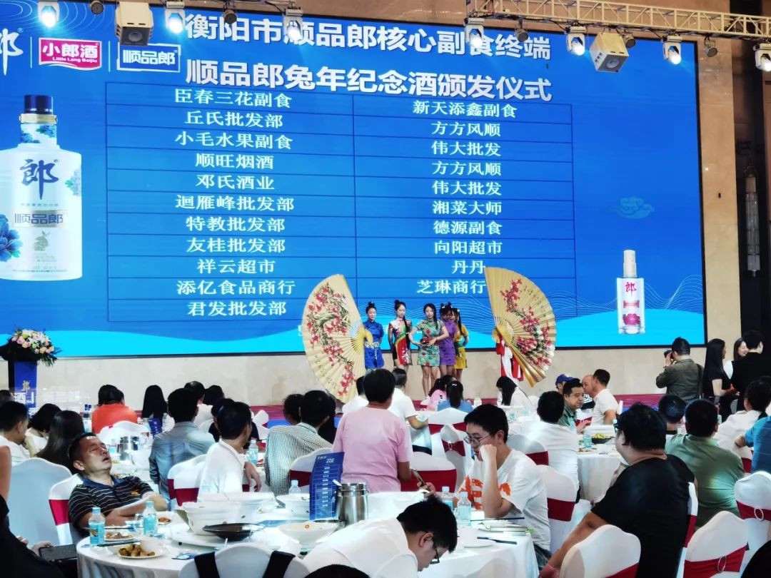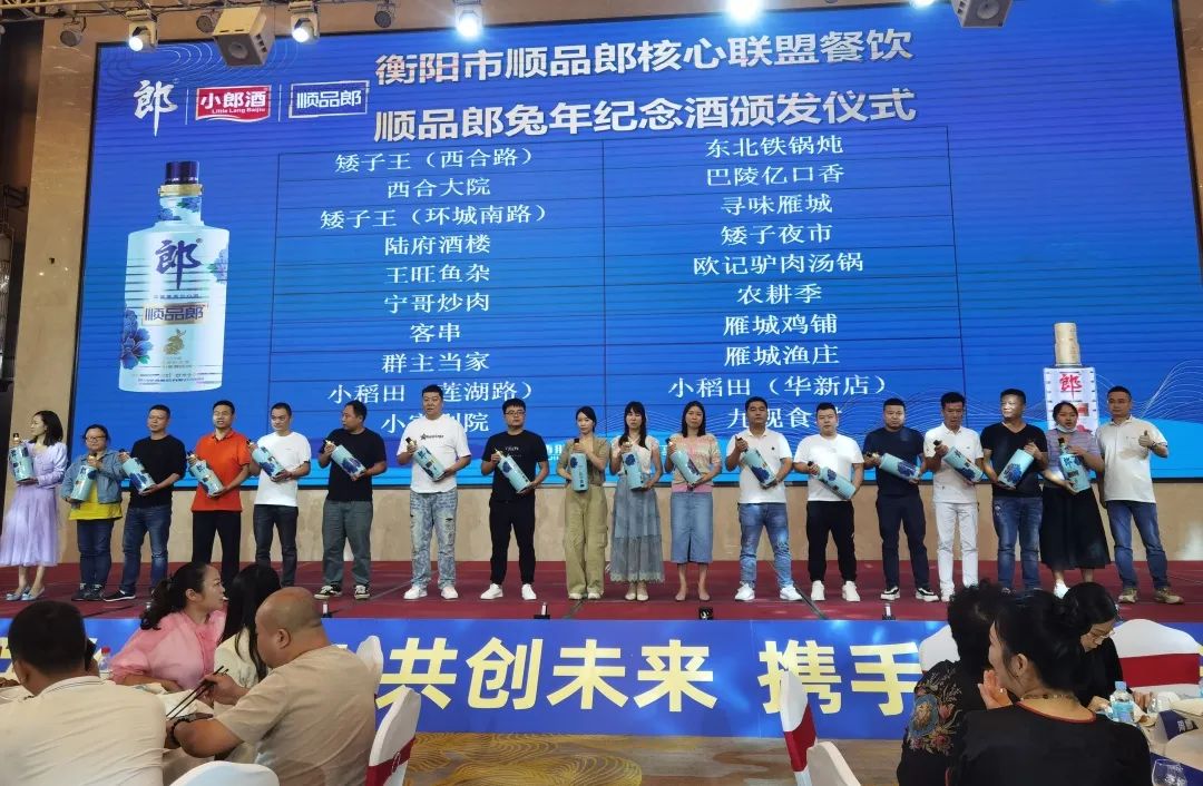 同时,现场还给衡阳市顺品郞核心联盟餐饮及优秀经销商颁发了极具纪念价值的精品礼品——顺品郞兔年纪念酒。