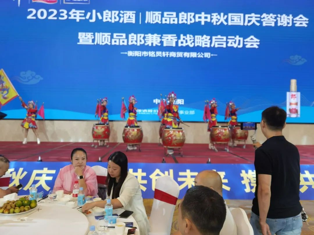 9月26日,曲园宴会中心4楼大厅高朋满座,喜气洋洋。2023年小郞酒/顺品郞中秋国庆答谢会暨顺品郞兼香战略启动会在这里举行,衡阳市场三年发展计划正式启动。衡阳市女企业家商会会长冯青青女士作为特邀嘉宾参加活动。小郞酒事业部湘南办事处总经理蒋轲先生到场祝贺并讲话,市女企业家商会三组会员、衡阳市铭灵轩商贸有限公司总经理李妮女士致辞。