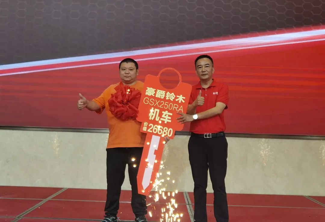 活动现场,主办方给幸运消费者颁发了丰厚的奖品——价值26680元的豪爵铃木机车。