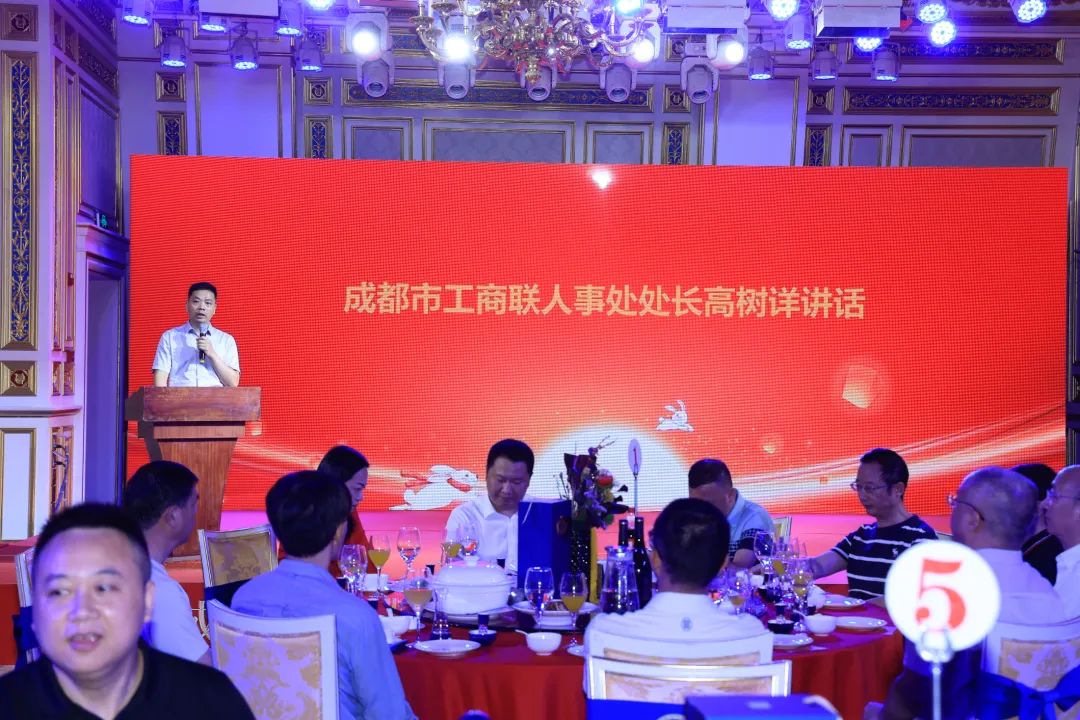 成都市工商联人事处处长高树祥在中秋联谊会上作了讲话,对本次活动的成功举办表示热烈祝贺,对商会近年来为促进成都、宿迁两地经济社会发展作出的贡献给予充分肯定。希望商会坚持正确的办会方向,坚持以党的二十大精神为指引,坚定不移地听党话、感党恩、跟党走,要主动融入国家发展大局之中,不断加强商会自身建设,全面提升服务质量,坚守依法合规经营底线,大力弘扬优秀企业家精神,努力在新征程上开创商会高质量发展的新局面。