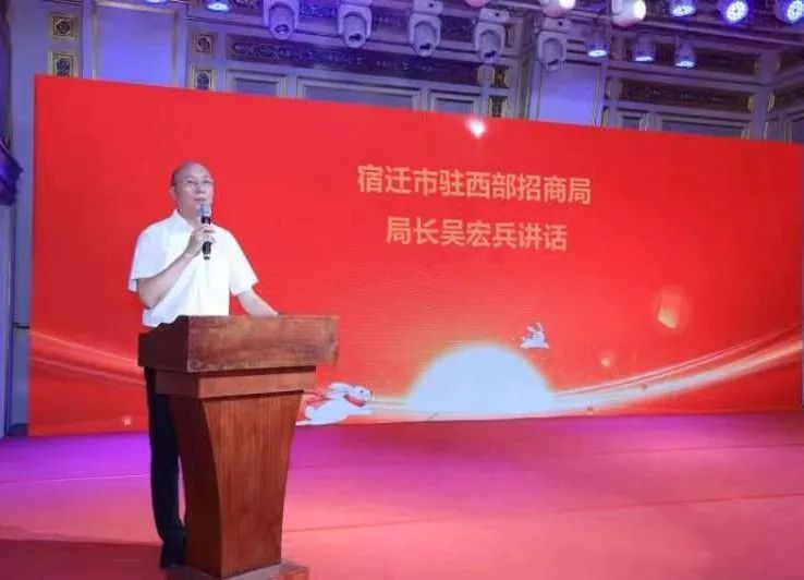 宿迁市驻西部招商局局长吴宏兵致辞,他在致辞中表示,在这个团圆的日子里,通过联谊活动为载体,更加激发商会会员老乡们的凝聚力,加深了解,增加友谊,他希望商会利用好平台优势,积极宣传宿迁,主动推介宿迁,让更多的企业家了解宿迁,走进宿迁,为家乡的经济建设添砖加瓦,同时也祝愿商会在未来取得更大成绩与更好的发展。