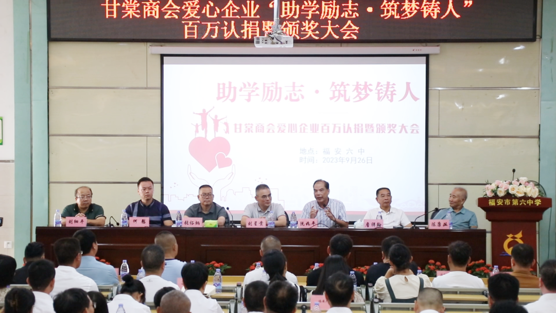 9月26日,由甘棠商会牵头,在福安六中举行“助学励志·筑梦铸人”百万认捐仪式。到会12家企业向莲城教育基金会,每年认捐117万元。按全家福安奖教助学基金会“留本付息”年息3%计算,相当于认捐3900万元。