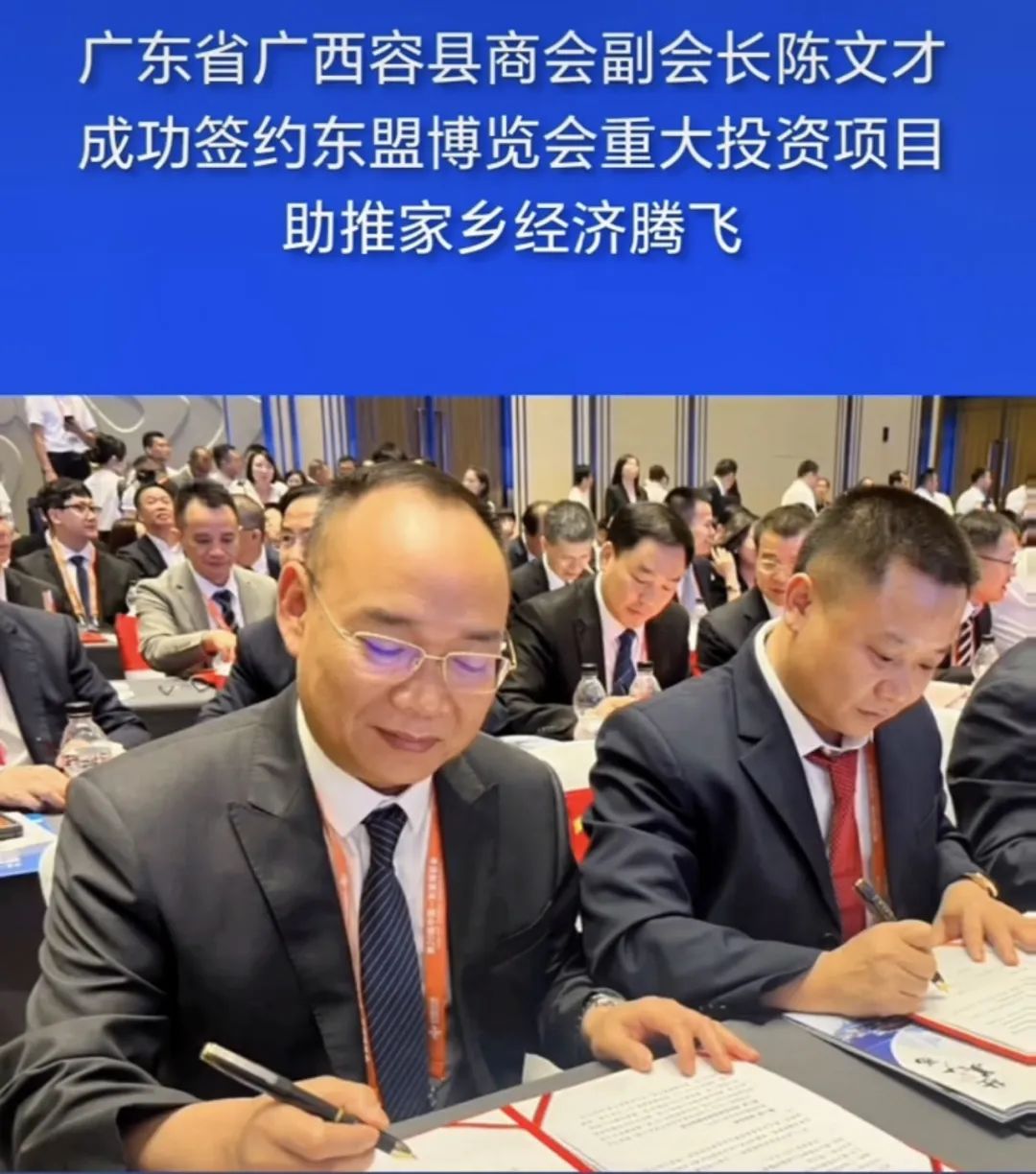 2023年9月17日,广东省广西容县商会副会长佛山市陈德记食品有限公司总经理陈文才在第20届东盟博览会上,隆重举行的重大项目签约仪式上,取得了圆满成功。