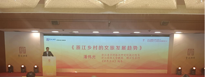 浙江省乡村振兴研究院执行院长、浙江农林大学教授、博士生导师潘伟光作了关于《文化产业赋能乡村振兴的重点是要做好历史文化村落保护利用》的主题演讲。