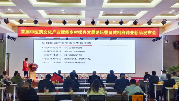 在相关研讨会中,皇城相府药业召开了首届中医药文化产业赋能乡村振兴发展论坛暨皇城相府药业新品发布会。皇城相府药业董事长、总经理马路军主持了会议。