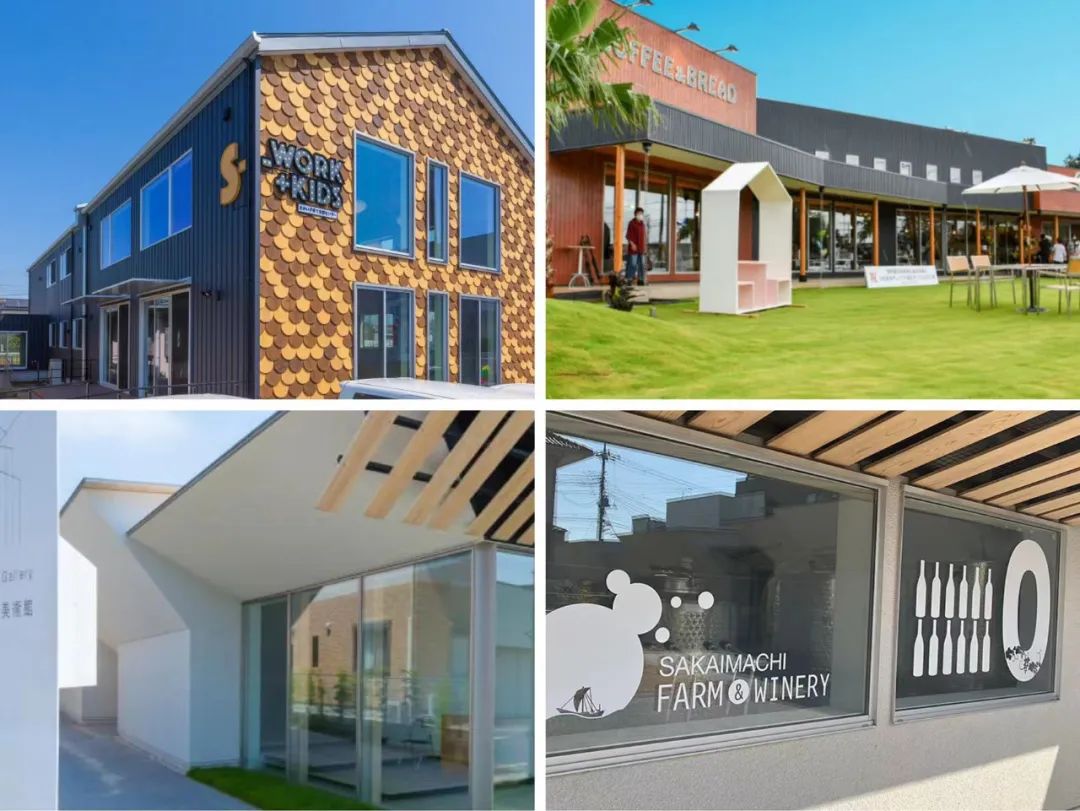 1、S-START UP 创业支援中心,为想要在镇上创业的人们提供支持的新综合体;2、S-WORK + KIDS 育儿支援中心,让孩子玩耍的同时工作的联合办公空间;4、S-Lab当地物产研究开发设施,以干土豆和葡萄酒为主,研究开发堺町新特产的食品研究所;5、S-Gallery 美术馆,展示在堺町度过晚年的艺术家的绘画和艺术作品的博物馆;6、S-BRAND 咖啡厅,以堺町特产“红薯干”为品牌的世界第一家、日本第一家正宗的红薯干咖啡馆;7、堺农场酿酒厂,提出葡萄酒的生活方式。