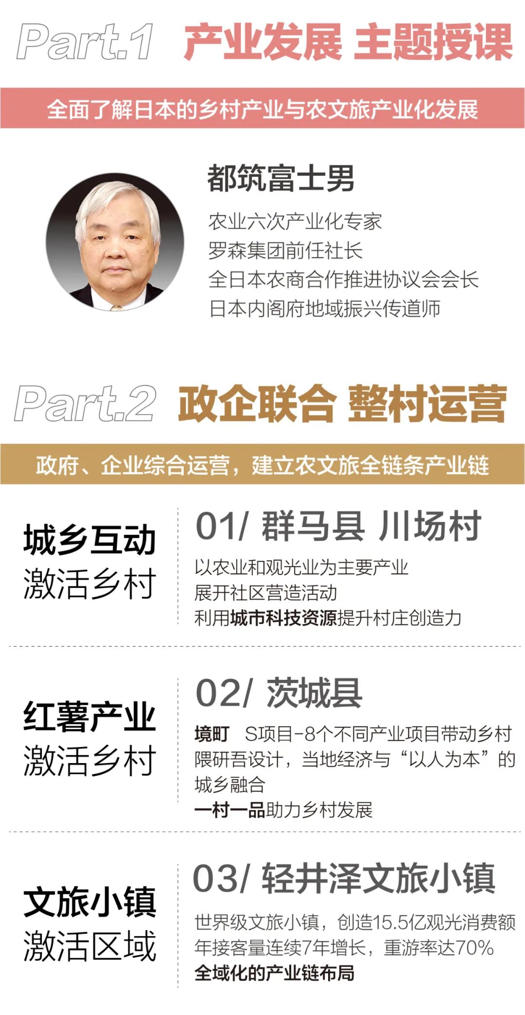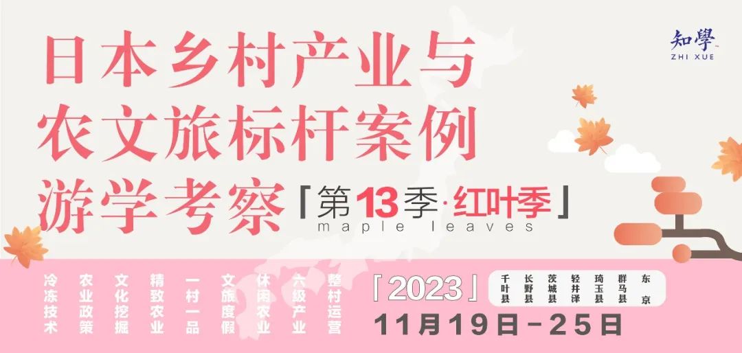 相比中国乡村振兴的方兴未艾,在上世纪50-70年代,日本农村已经完成了城镇化,发展出了最适合的在地经济。中日两国在文化底蕴等方面有许多相通之处,日本发展成熟的农业旅游、休闲农业、文创产业以及乡村振兴领域的经验,对于中国极具借鉴意义。特别是落实到具体的产业发展、基础建设、运营体系构建、景观设计、爆品文创打造等方面,更是值得中国去取其精华、发掘出适合中国国情的路径,以此推动休闲农业旅游和乡村振兴的发展。知学自开展国际游学课程以来,已深入日本考察10余次,已考察超100个以上的项目。11月19日,知学再度开启日本乡村产业及农文旅游学,结合当下行业趋势与项目痛点,考察最具代表性的项目,从全面了解到深入内部,学习、交流、体验、提升......深入日本 我们学什么?