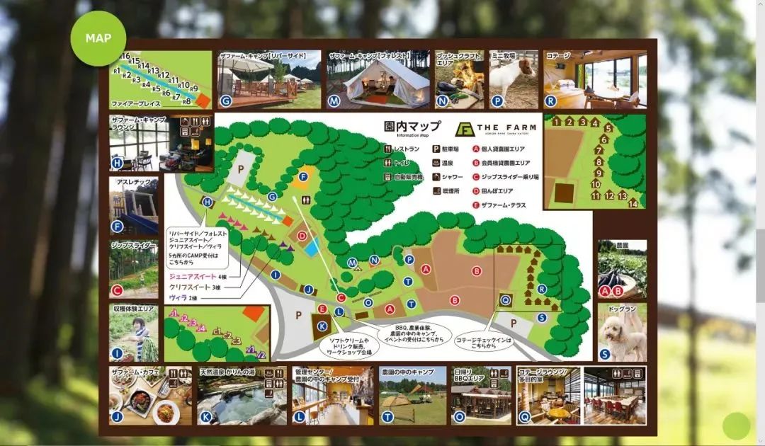 THE FARM位于东京千叶县,从东京车程一个半小时,占地10万平方米、约有2.5个东京巨蛋大小,称得上是东日本地区最大的Clamping农场度假村,有Clamping露营地和农场小屋,可提供出租农田、住宿、温泉、餐饮、烧烤BBQ、户外活动等服务。来到The Farm不要错过来趟农园收割体验,园区整年内会种植超过60个品种、超过100款蔬果,入住的客人都可在造型可爱兼对蔬果有丰富知识的“野菜小子”的带领下,参加免费采摘活动,绝对是城市人难得的农作体验。