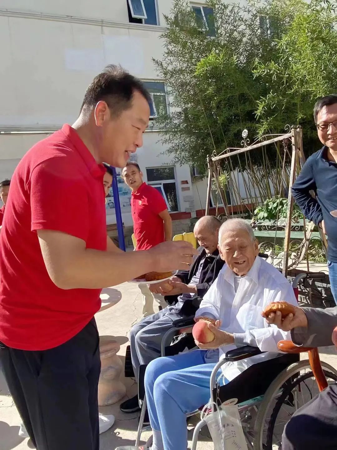 田会长给老人们送上一年一中秋祝福;吃块月饼长精神,祝您身体健康好,喜笑颜开常灿烂 。