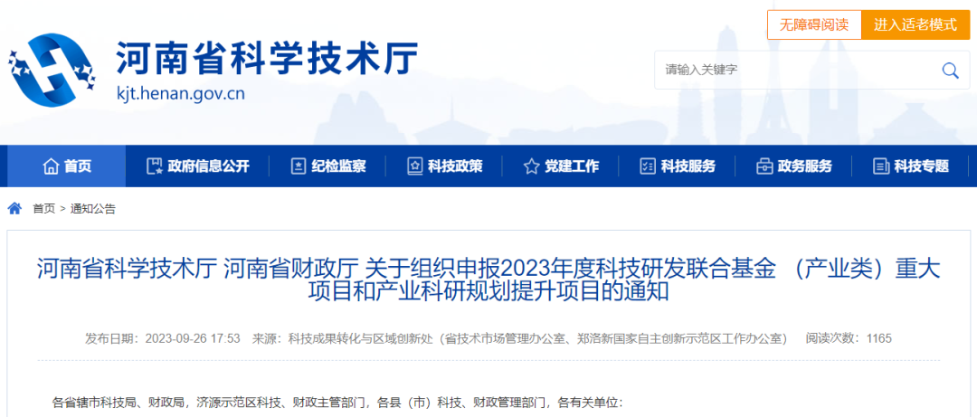 2023年度产业研发基金相关工作依托河南省科技研发联合基金管理系统(http://www.hnstf.cn)实施全过程信息化管理。申报单位经注册并实名认证后登录系统进行申报。各主管部门管理员用户使用统一分配的账号登录系统。申报单位确认提交前可以多次修改保存;主管部门审核期间退回修改的项目可以再次提交;已提交至省科技厅的项目不再退回修改。各项目申请单位、主管部门须严格按照时间要求进行申报和审核提交,逾期不再受理。申请单位系统填报时间为2023年9月27日-2023年10月20日,主管部门审核提交截止时间为2023年10月26日。