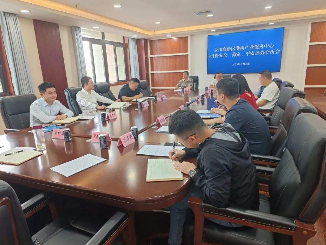9月26日,港桥产业促进中心党工委书记、主任陈小武主持召开9月份安全稳定形势分析会,党工委委员、副主任张子奇、蒋中林及科室负责人参加。