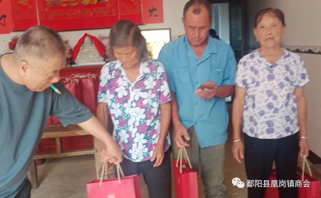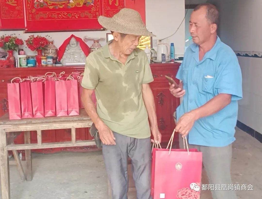 为了更好地发挥商会的作用,弘扬中华民族尊老敬老、爱老助老的传统美德,提升老年人的获得感和幸福感。9月27日上午,凰岗镇商会秘书处在镇人大主席樊启华带领下,带着欧阳天生会长的殷殷嘱托,来到林桥村委会夏家桥村,开展“商会送温暖、不忘桑梓情"走访慰问活动,为古稀老人送去了商会全体会员的节日问候和祝福,祝愿老人们度过一个温馨美好的中秋佳节,充分表达了凰岗镇商会对古稀老人的深情牵挂。