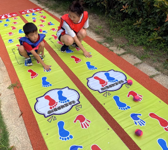 图片上画的是手印,就用手去接触;画的是脚印,就用脚去踩;同时身体其他部位不能接触除图片以外的区域哦,否则就犯规啦~2人成组开始比赛,先到达终点者获胜,获得纪念礼品一份~小朋友们玩的时候不要搞错啦~