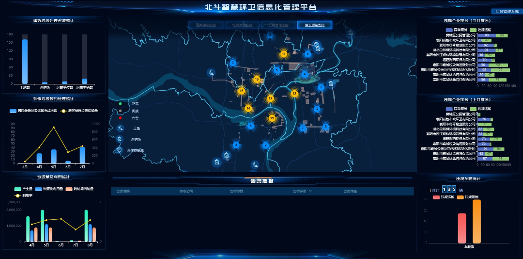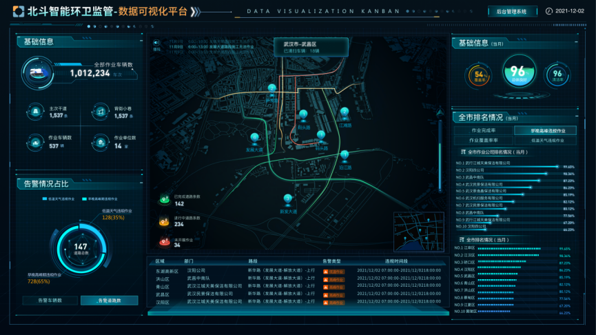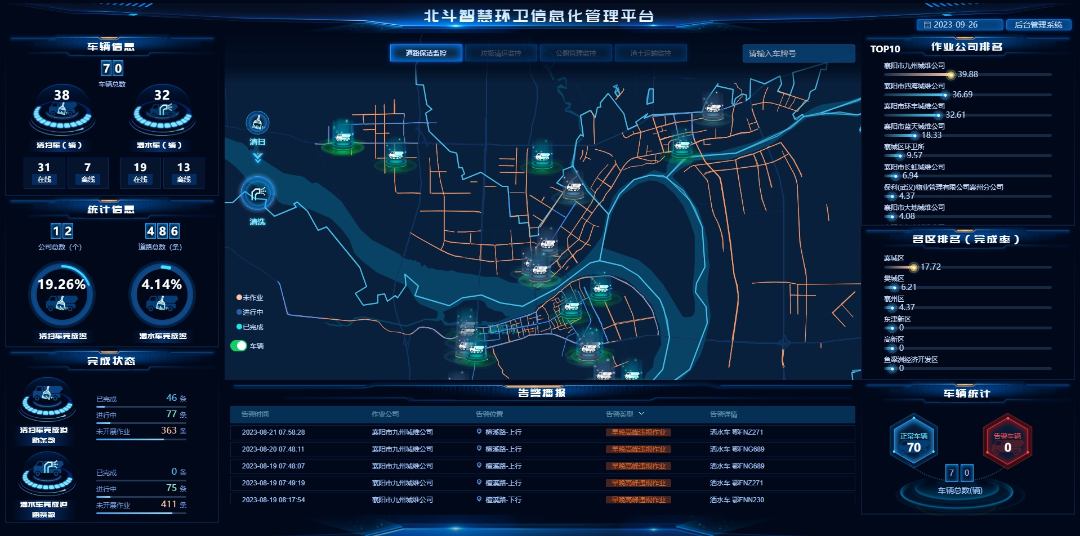 “襄阳市城市运行管理服务平台(一期)项目” ,公司团队承接了“前端感知系统(环卫)”子项目的建设。项目建设内容包含1900台环卫车(洒水车/清扫车/喷雾车/垃圾清运车/渣土车)、100个公厕(10个高端公厕)、120个垃圾转运站、3个垃圾处理厂、19艘水上清漂船等的前端感知设备安装实施、软件平台开发、移动端App开发,包含道路清扫保洁、垃圾清运处置、公厕卫生保洁、渣土运输监管四大模块,并与市城运平台进行了数据对接。