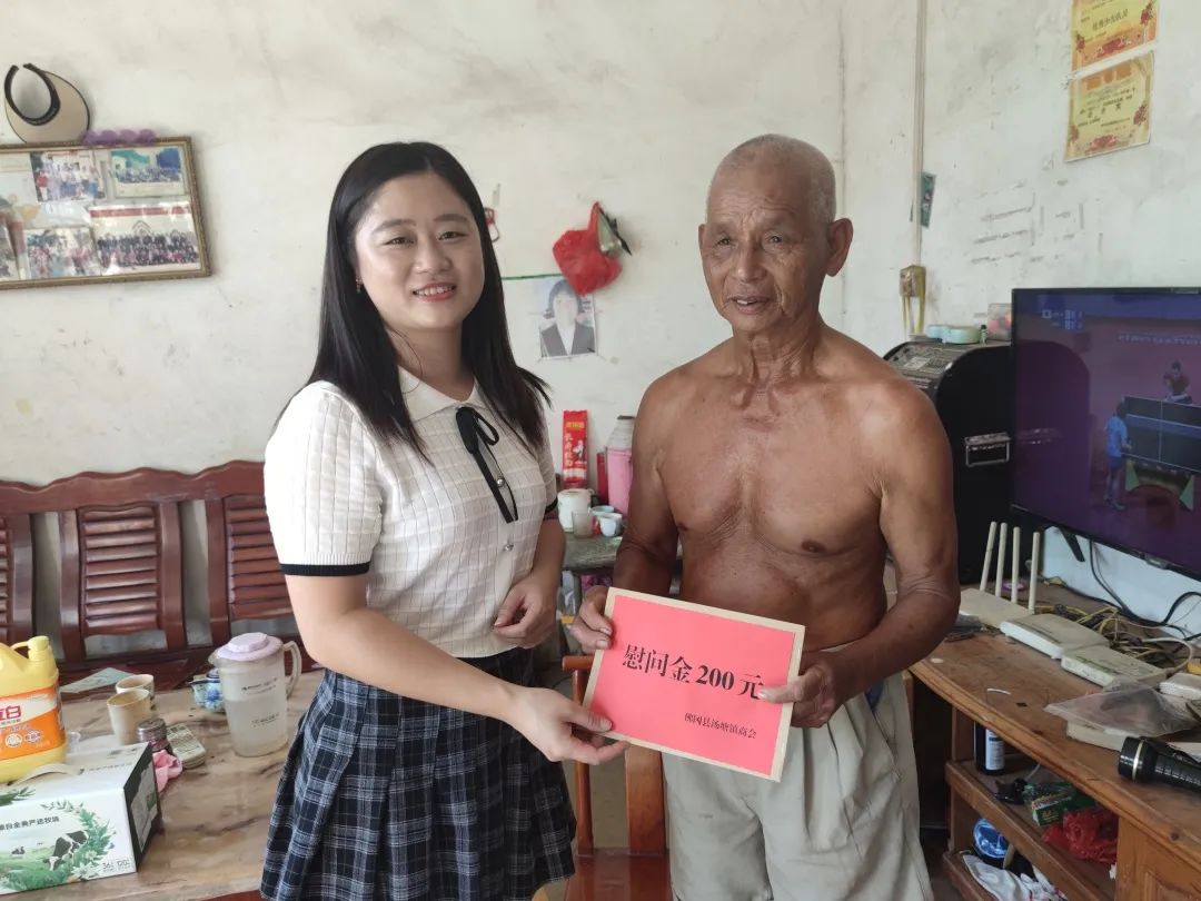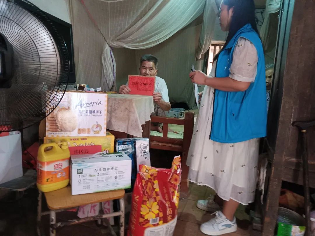 每到一户,都亲切地与他们交谈,认真倾听他们的心声,询问了解他们身体情况和生活状况等,并为他们送上200元慰问金及大米、牛奶、面条等生活物品,带去党和政府、社会各界的节日祝福和关怀,预祝他们中秋快乐。
