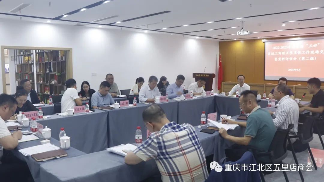 评审组组长渝北区委统战部副部长、区工商联党组书记刘思伦主持会议,重庆市工商联一级调研员刘军、重庆市工商联会员部副部长余笃强出席。荣昌区委统战部副部长、区工商联党组书记周光辉,潼南区委统战部副部长、工商联党组书记吉鸿,大足区委统战部副部长、区工商联党组书记张军东,铜梁区委统战部副部长、区工商联党组书记袁红梅,合川区委统战部副部长、区工商联党组书记周其荣,江津区委统战部副部长、区工商联党组书记龚元祥,永川区工商联党组成员、副主席、秘书长兰学艳,江北区工商联党组成员、秘书长淦容南等八区全国“五好”县级工商联参加会议。