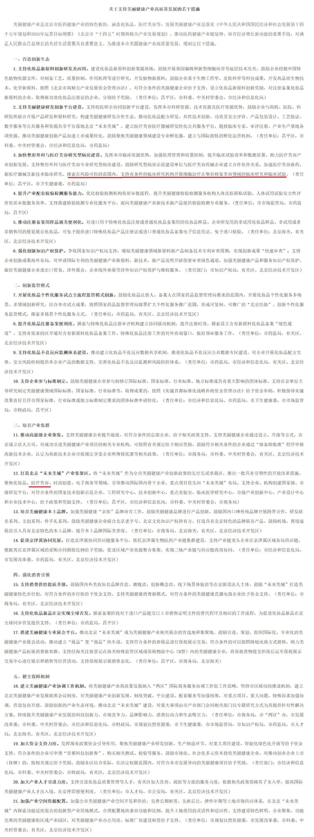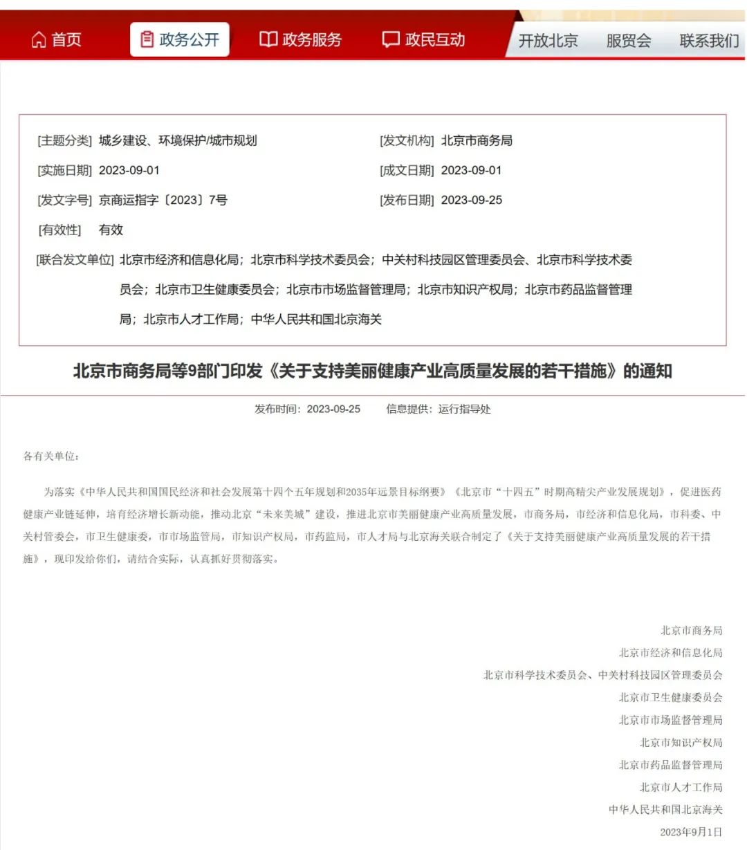 北京市人民政府网发布《关于支持美丽健康产业高质量发展的若干措施》的通知