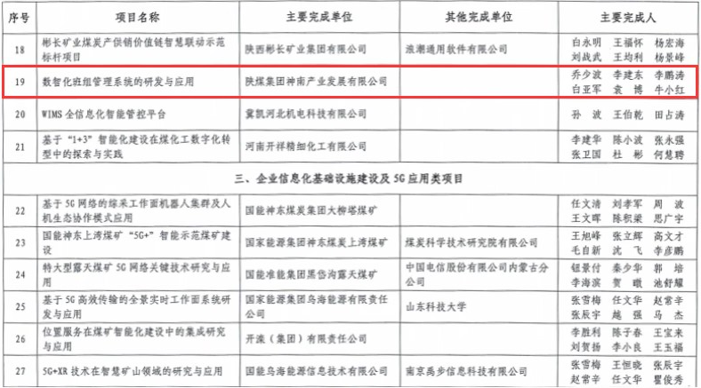 近日,中国煤炭工业协会公布了《2021—2022年度煤炭行业两化深度融合优秀项目案例名单》。神南产业发展公司申报的《数智化班组管理系统的研发与应用》项目成功入选。