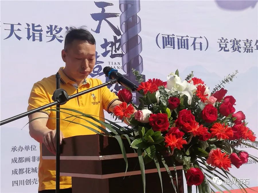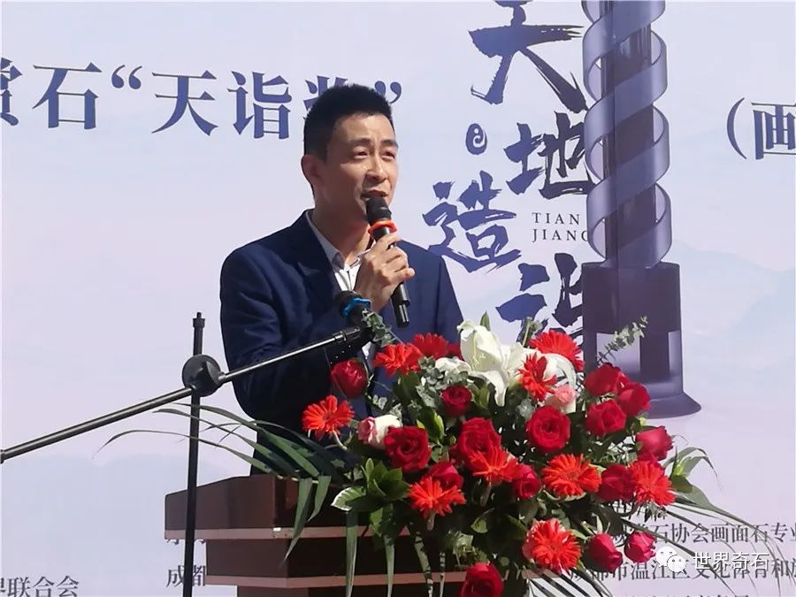 2021年4月30日上午,中国成都春季奇石交易会暨首届观赏石“天诣奖”竞赛嘉年华系列活动,在成都温江天府花城开幕。中国观赏石协会田传宏主任、画面石专委会曹磊在开幕式上讲话;四川省观赏石艺术研究会领导,省内外部分观赏石协会的领导,各地奇石爱好者和商家到场参加活动。