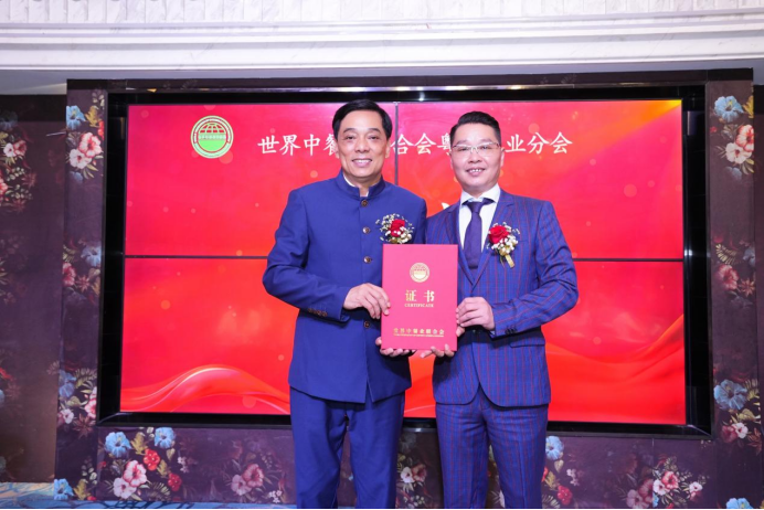 邢颖会长为梁日东主席颁发聘书