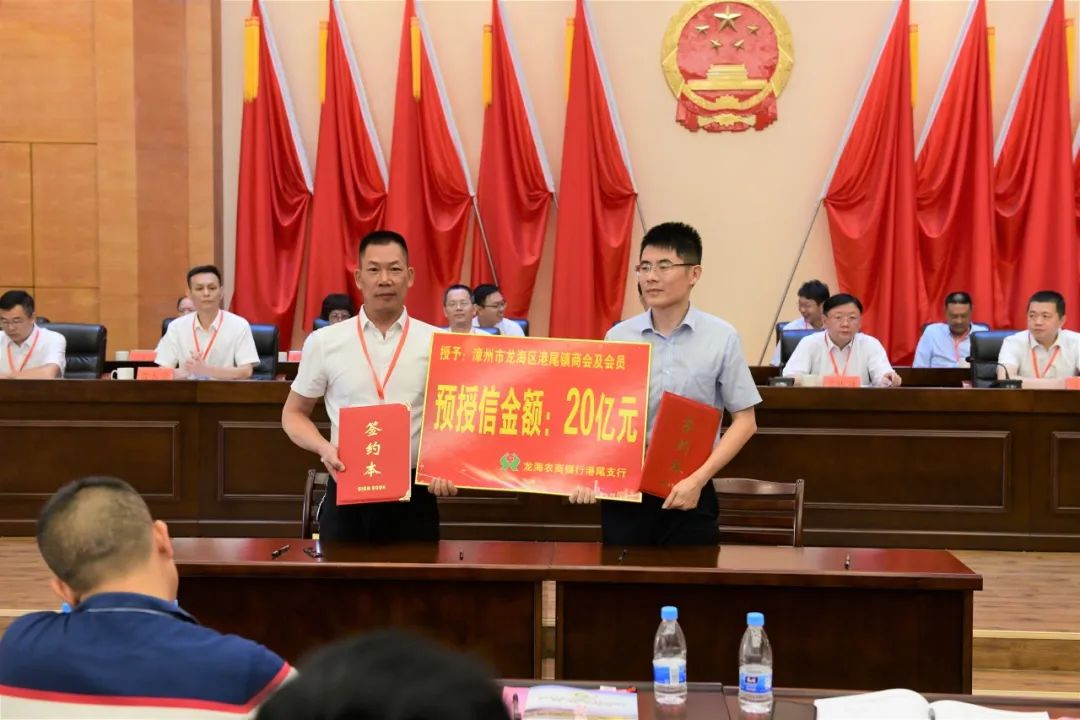 会上,港尾镇商会还与龙海农商银行港尾支行举行了战略合作签约仪式,商会及会员获预授信金额20亿元。