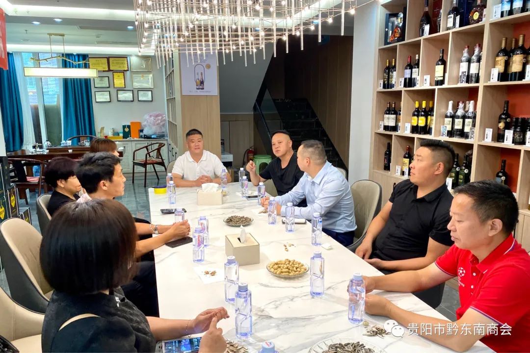 2023年9月27日,贵阳市黔东南商会常务副会长梅昌鸿、罗安富,副会长潘禹燃、王艳,秘书长向华一行,先后走进贵州忆之非贸易有限公司和贵州群杰慧科技有限公司两家会员企业,进行了为期一天的走访交流活动。在贵州忆之非贸易有限公司,公司负责人潘永刚对商会一行的到来表示热烈欢迎,并向大家详细介绍了公司的经营范围、产品特点以及市场销售情况。商会一行对公司产品多元化、客户服务和企业文化给予了高度评价,同时也就红酒市场的未来发展进行了深入探讨和交流。