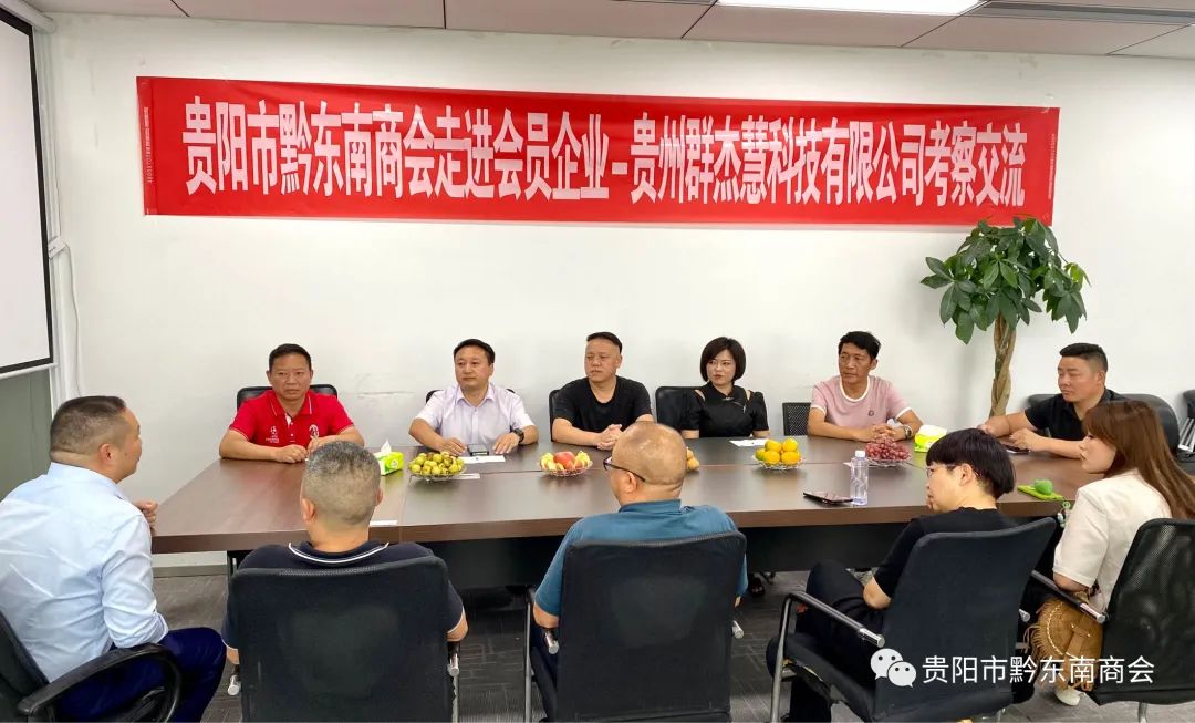 在贵州群杰慧科技有限公司,商会一行与公司负责人彭礼杰等进行了座谈交流。彭礼杰向大家介绍了公司的发展历程、服务领域以及未来的发展方向。他表示,公司在科技推广和应用服务业领域有着较强的实力和较高的竞争力,合作伙伴可以享受到优质的服务和专业的技术支持,并表示愿意与商会加强合作,共谋发展。
