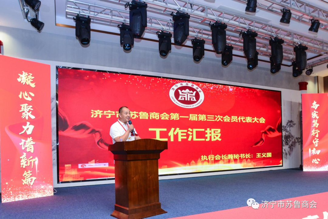 济宁市苏鲁商会执行会长兼秘书长王义国作工作汇报。