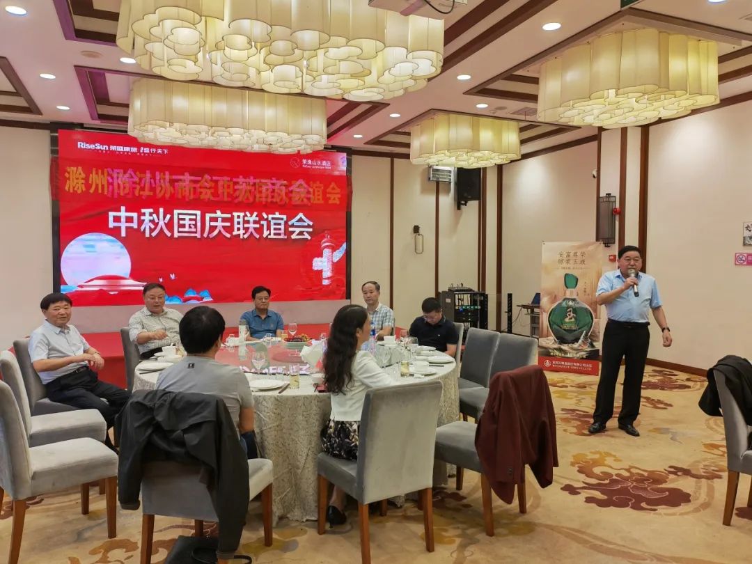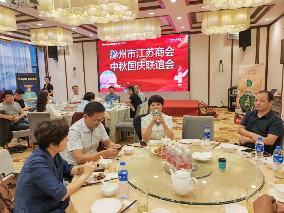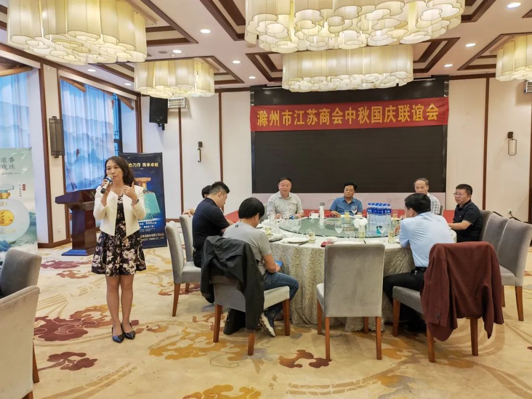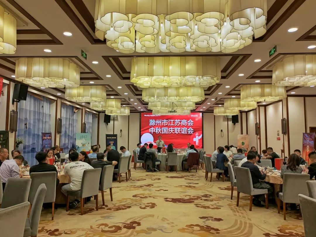 丹桂飘香秋意浓,金秋时节硕果丰。在中华民族传统佳节——中秋节即将来临之际,9月26日下午,滁州市江苏商会在常务副会长单位琅琊山荣逸山水酒店举办了“迎中秋、庆国庆”中秋联谊会,五十多位在皖苏商欢聚一堂,喜迎中秋、国庆双节。