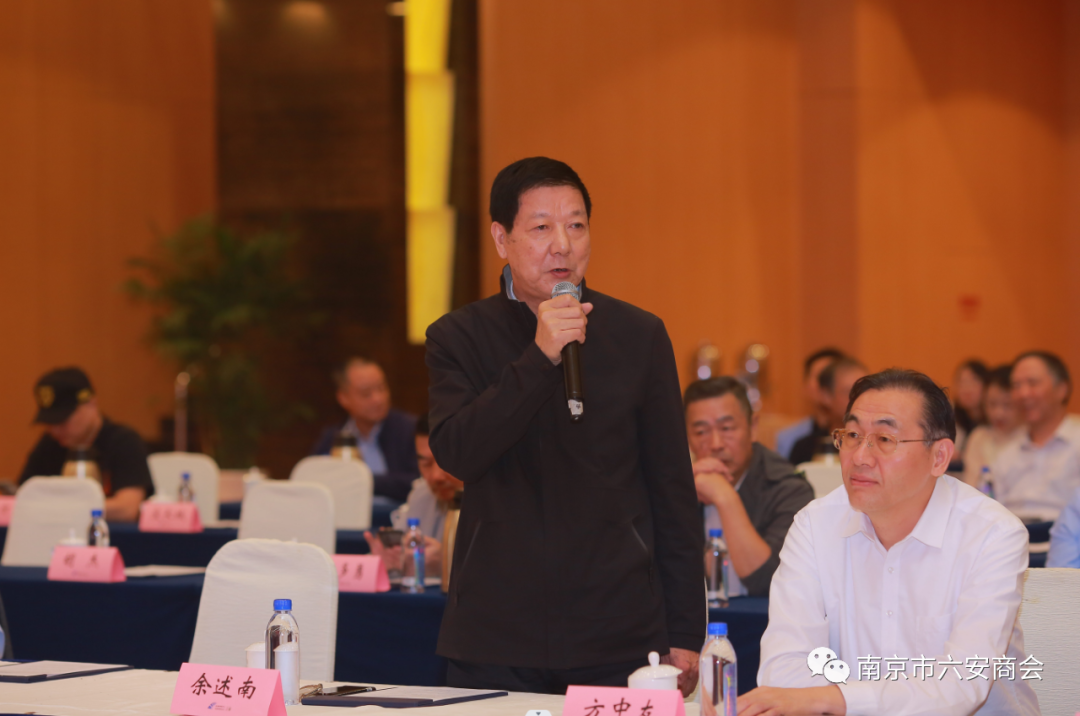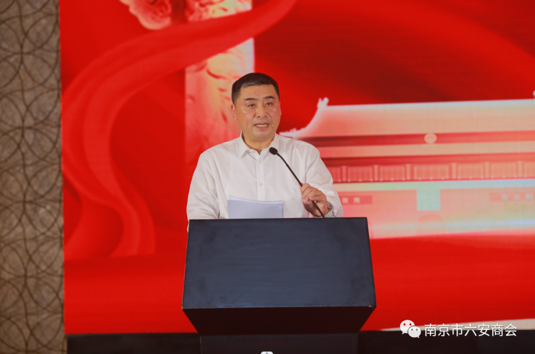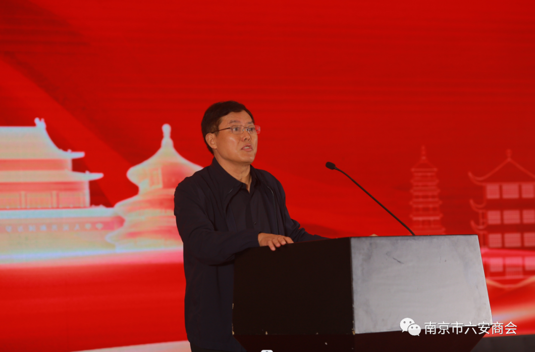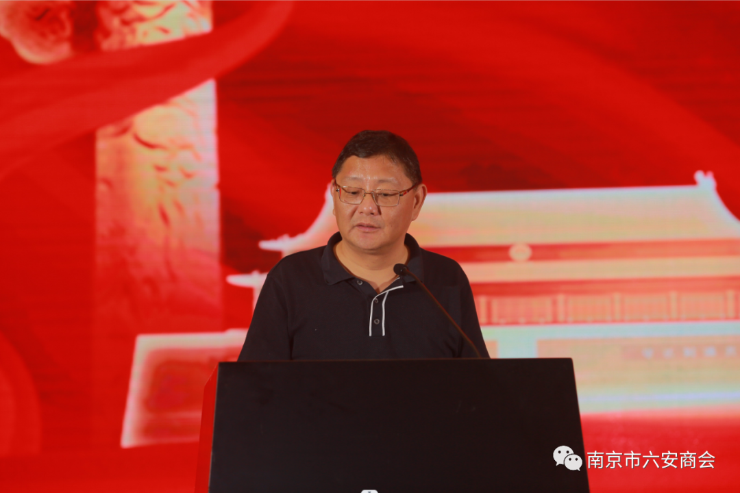 南京市六安商会会长、南京凯风建筑装饰工程有限公司董事长周云在会议讲话。他表示:六安籍党政军及社会各界人士一直关心支持六安企业家们的发展与成长,企业家们也是自加压力、努力发展壮大自己,为南京、六安两地的经济建设和社会发展默默做贡献。体现的都是正能量,值得感谢与点赞。两会将围绕今天会议的主题和领导们提出的要求,落实以“政”为先、以“人”为本、以“商”为体、以“诚”为基,抓好党建工作,搭好服务平台,发挥政商政企的桥梁纽带作用,积极构建商协会主管部门“公转”和两会“自转”的循环格局,更多的为会员企业解决实际困难,维护其合法权益,当好民营经济发展的“娘家人”“守夜人”和“看护人”。