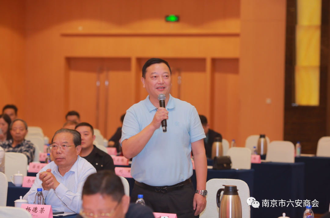 南京市六安商会会员企业家代表、南京商络电子股份有限公司董事长沙宏志在会议发言。他表示:感谢双节到来之际家乡领导带来家乡慰问。当前经济环境困难,对企业提出更高要求。我们六安商会会员面临困难时没有放弃,开展各项工作自保自救,代表商会企业表态,坚持完善革新自己,为自己的企业、为所处南京地区、也为家乡的繁荣坚定信心,保持增加企业竞争力,做出持续更好的贡献!