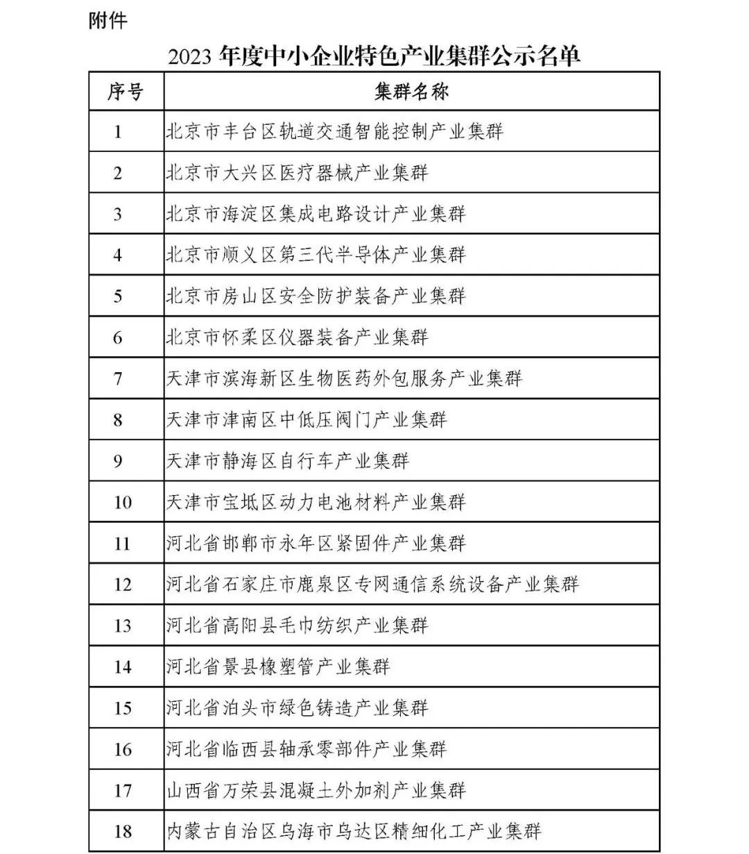 附件:2023年度中小企业特色产业集群公示名单.pdf